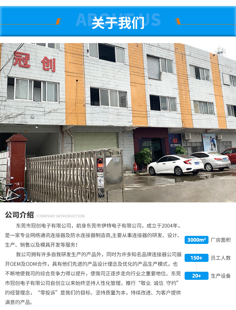 本公司提供優(yōu)良的RJ11、RJ12電話插接件、RJ45網絡插接件,耐環(huán)境RJ45防水連接器,防水電連接器及其它精密連接器,產品應用于網絡通訊(電腦主板,網絡交換機,路由器,電信設備)、惡劣環(huán)境下數據傳輸與控制及電源信號傳輸與控制(戶外LED顯示屏、機器控制、工業(yè)程序控制等)