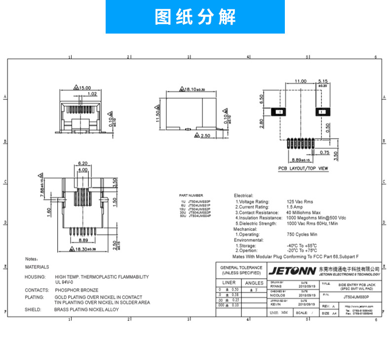 RJ45貼片式插座 10P10C網(wǎng)口座