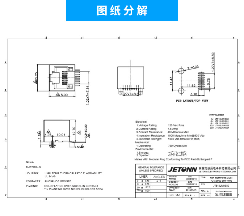 RJ45貼片式插座 網(wǎng)絡(luò)連接器